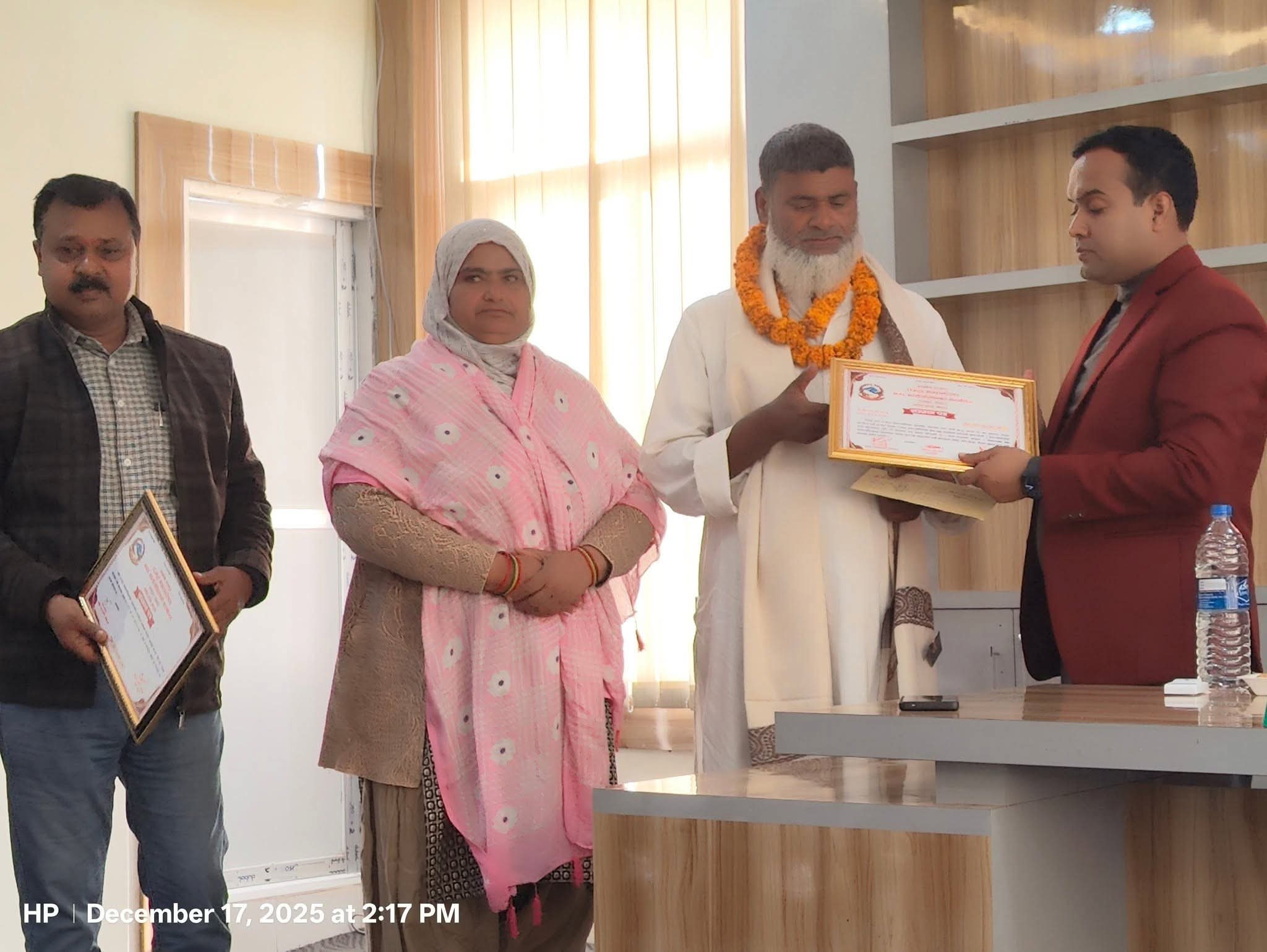 गौर,२ पुस।रौतहटको राजपुर नगरपालिका वडा नं. २ अन्तर्गत सहायक पाँचौँ ना.सु. पदमा कार्यरत मोहम्मद समिउल्लाह ज्यु आज बिधिवत रूपमा अनिवार्य अवकाशमा प्रवेश गर्नुभएको अवसरमा उहाँलाई उच्च सम्मानका साथ औपचारिक रूपमा विदाई गरिएको छ ।