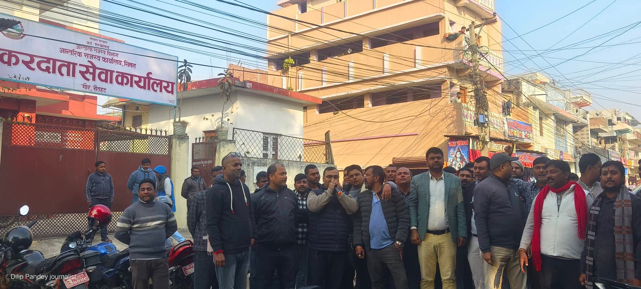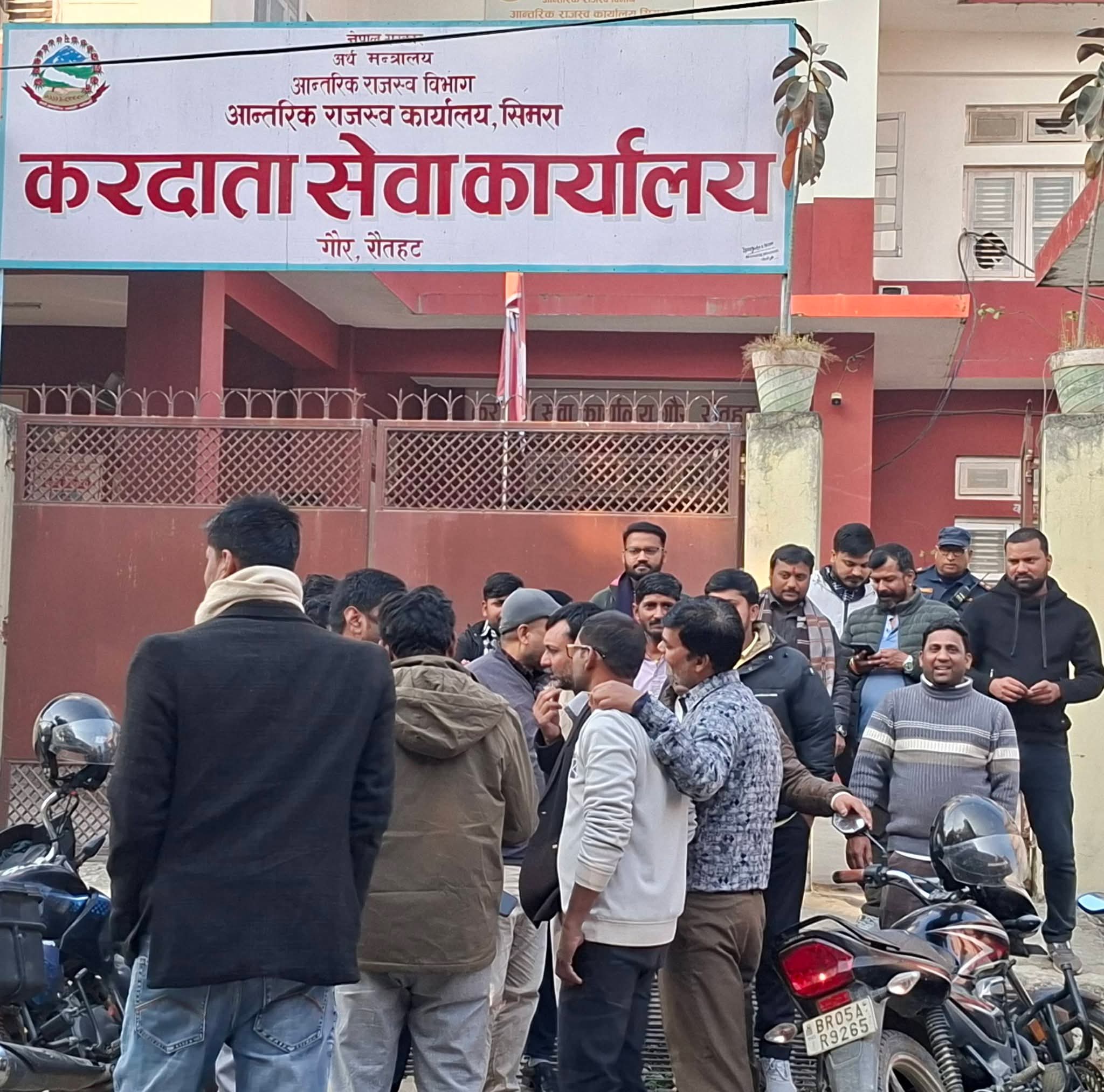 रौतहट ,३ पुस।करदाता सेवा कार्यालय खारेज गर्ने सरकारी निर्णयको विरोधमा रौतहट उद्योग वाणिज्य सङ्घको अगुवाइमा गौरमा विरोध सभा आयोजना गरिएको छ।